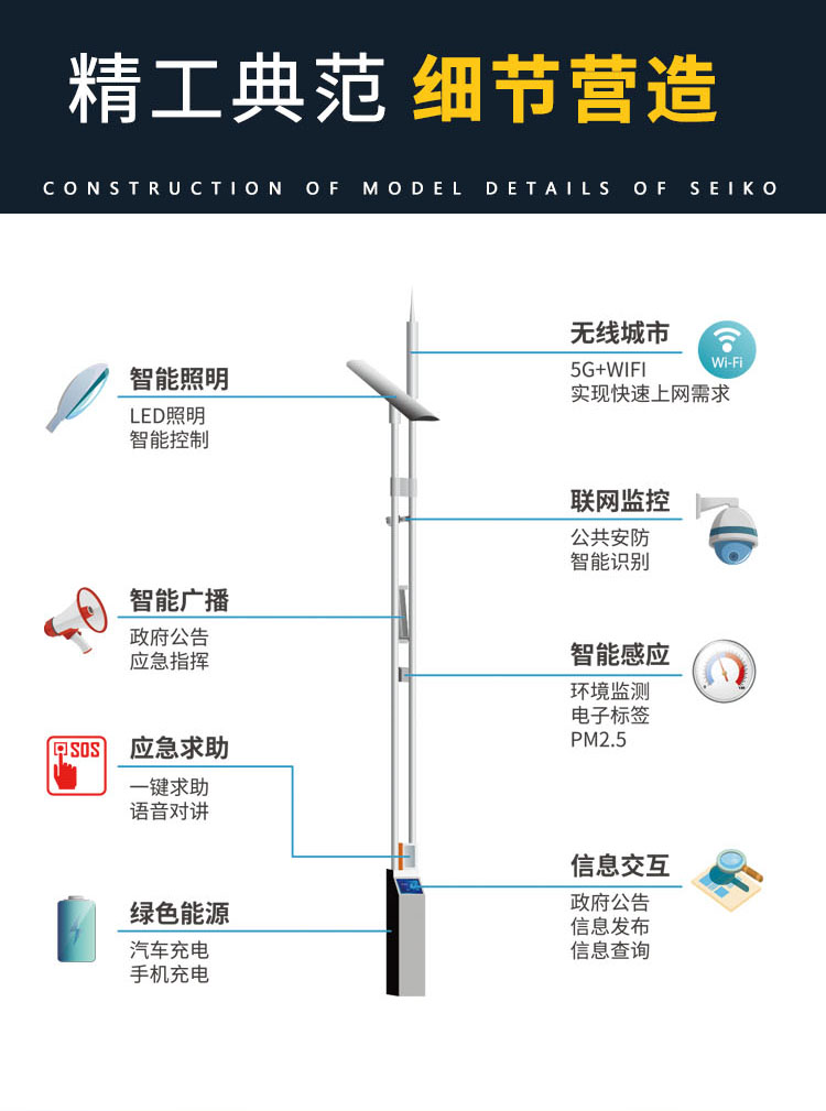 智能路燈桿功能示意: